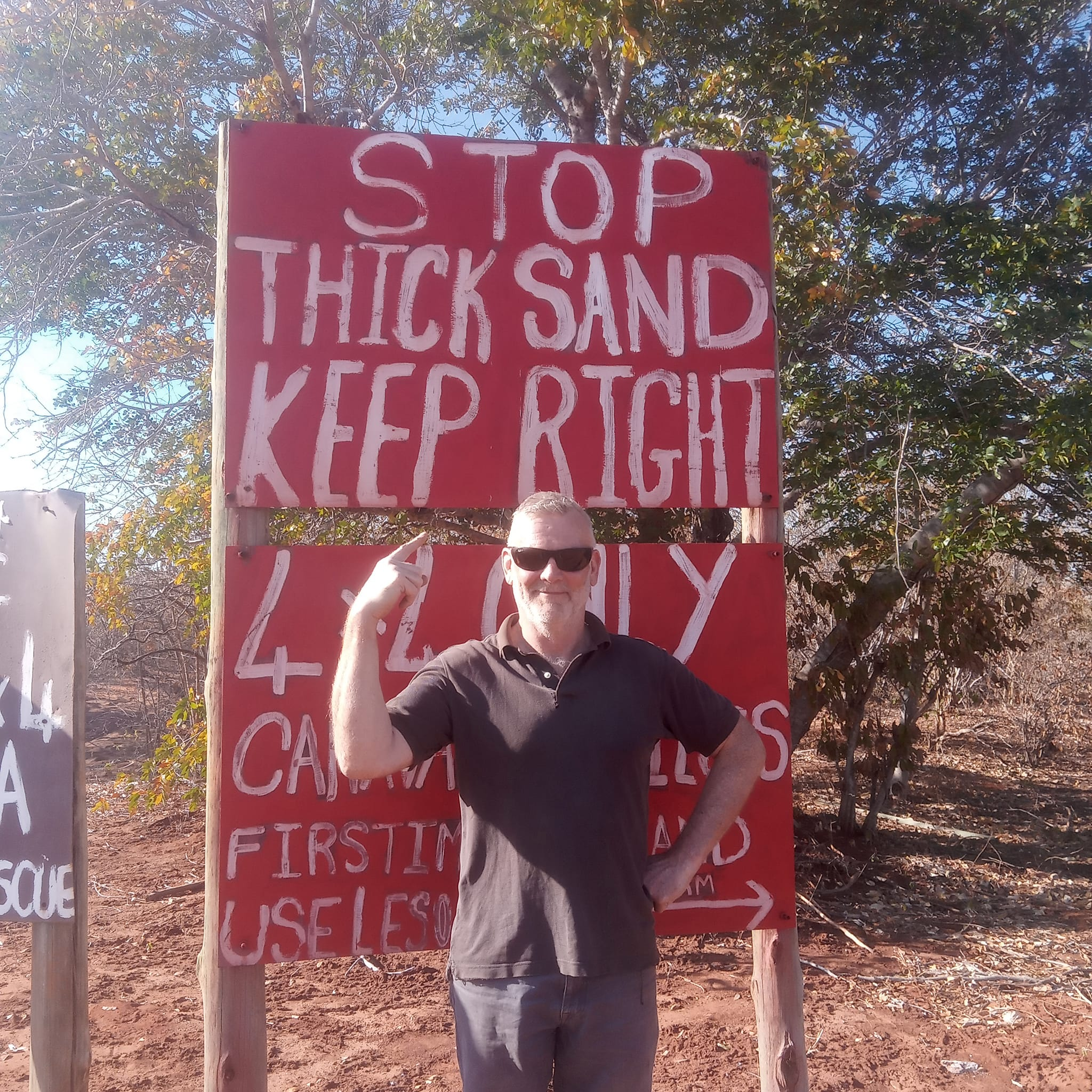 Not many mishaps were had on this leg of the trip apart from when we saw a tree on the road and decided to move it. We soon found out the tree was there for a reason and promptly became very stuck in the sand. Thankfully Dave had bought some mud tracks which we all thought were probably a waste of money, but no, they were indeed very useful. If you see a tree on the road, don’t move it! If you see a sign, follow the instructions! We failed on both counts.